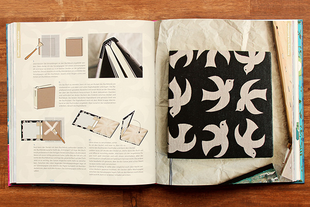 Neben dem Kapitel über die koptische Bindung finde ich aus das Thema Siebdruck mit Papierschablonen und Stoffbezogene Bücher sehr spannend.