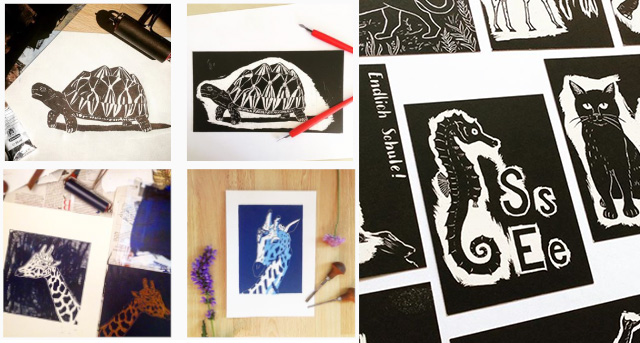 Zu kaufen gibt es die meisten Linoldrucke und Illustrationen in meinem etsy-Shop