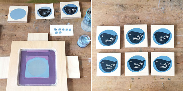 Ich drucke und stempele nur mit wasserbasierten Farben, daher trocknen die Drucke recht schnell. Ich bin sehr froh, dass ich jetzt meinen Arbeitstisch einfach so stehen lassen kann. Früher musste ich wegen der Kinder immer alles sofort wieder wegräumen. Auf diese Weise ging mir sehr viel Zeit verloren.
