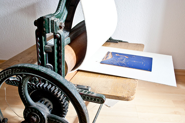 Weiter geht es mit meiner Interview Serie, in der ich Kreative frage wie sie ihr Druckstudio zu Hause eingerichtet haben. Ich selbst möchte nämlich meine Adana in Zukunft zu Hause aufstellen um den Arbeitsweg zum Studio und zurück zu sparen. Ich mache mir etwas Sorgen, dass ich nicht das ganze Material und das Papier und die Farben und so weiter zu Hause unterbringen kann. Daher schau ich mich um und frage heute Kristina Schaper wie sie das mit dem Drucken zu Hause so macht.