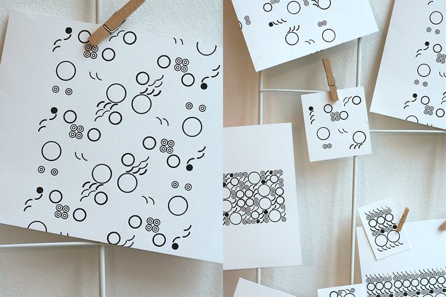 — I took all my circles, quadrants and dots, build a block and printed the design side by side in repeat.