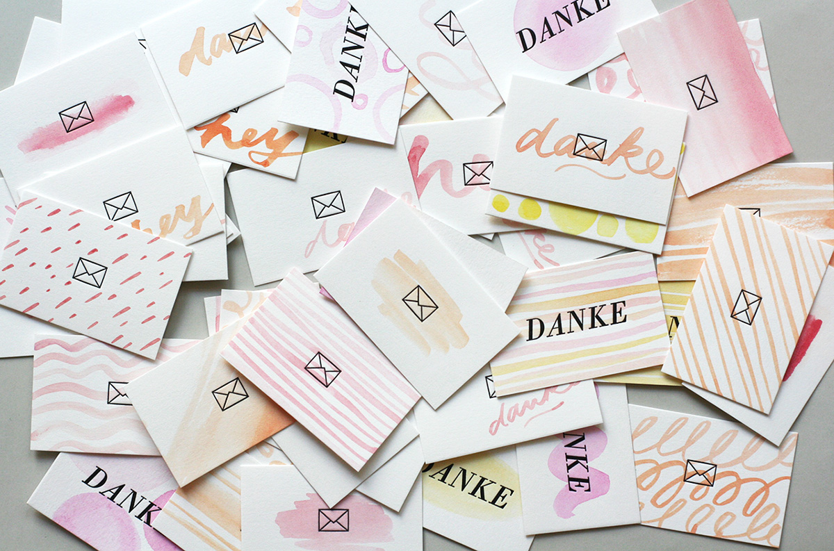 Ich habe die Wasserfarben herausgeholt um kleine Dankeskarten zu gestalten. Es hat wahnsinnig Spaß gemacht. Schade, dass die Papierreste irgendwann alle waren. Vielleicht mache ich noch eine zweite Runde mit Glückwunschkarten dachte ich heute morgen…